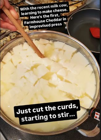 We have a milk cow back on the farm after several years without one. With the abundance of milk, we’re learning to make all things dairy – yogurt, butter, ice cream, creme fraiche, cream cheese and new to us, cultured/rennet hard cheeses such as cheddar, asiago, colby, jack, and caerphilly.